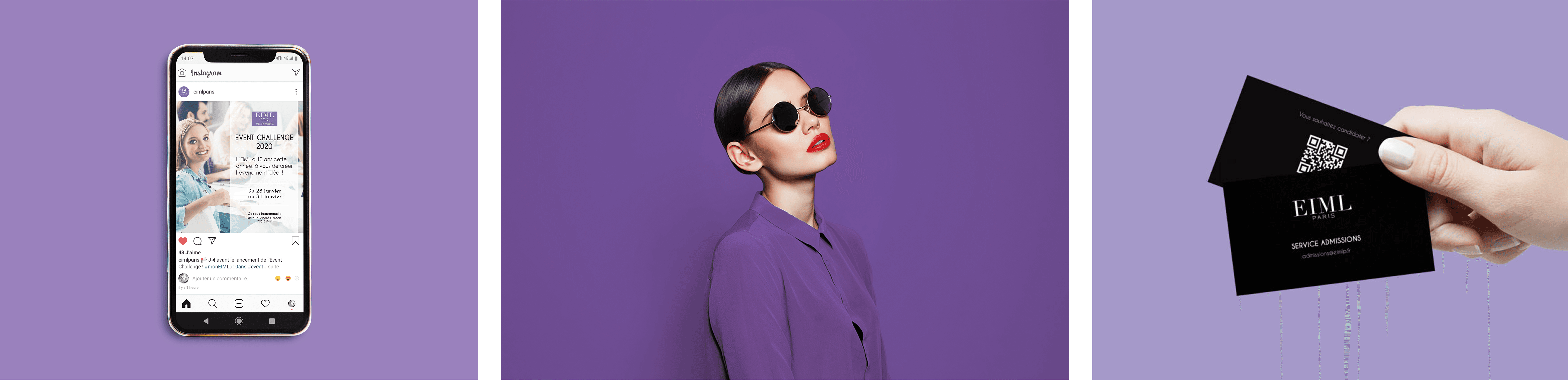 J'ai accompagné l'EIML, école internationale de management du luxe, sur l'ensemble de sa communication visuelle, aussi bien pour ses événements phares que pour sa communication quotidienne.